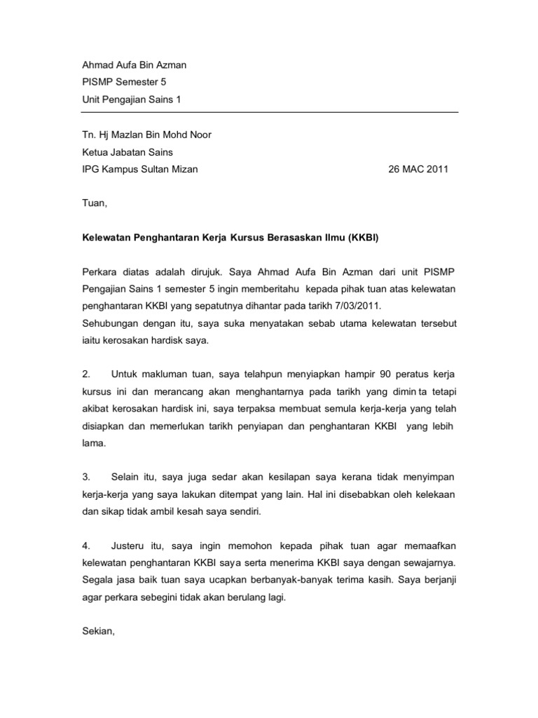 Anda mestilah cetak surat ini dan tandatangan. Lebih teruk lagi dibuang kerja. Whatsapp atau sms tidak tergunapakai. Saya merangkap jawatan sebagai pembantu juruteknik ingin menyatakan sebab …